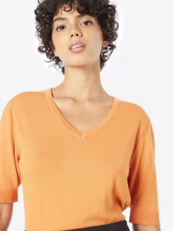 MORE&MORE Fijngebreide Truien Trui Dames Lichtoranje